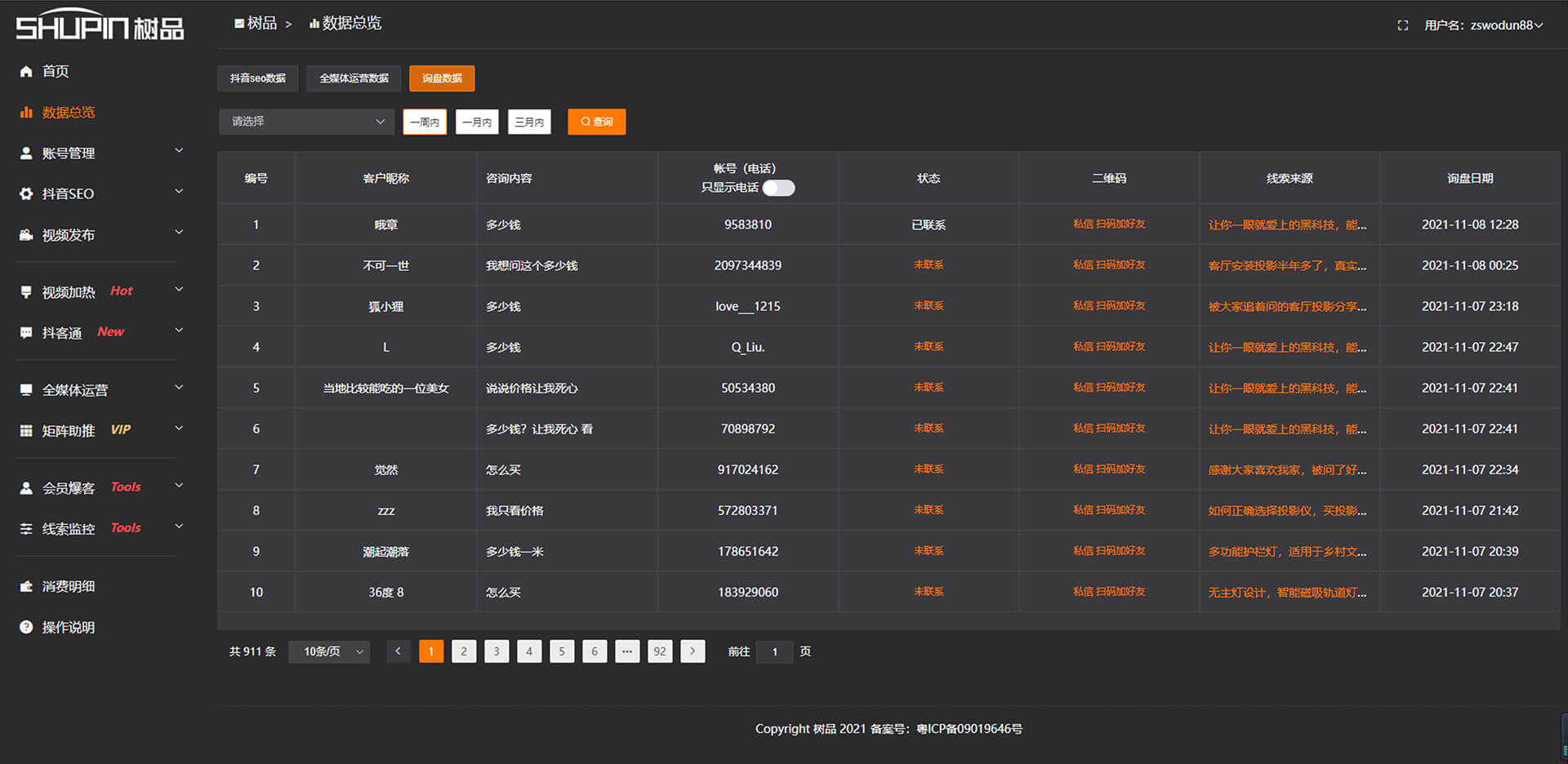 詢盤數(shù)據(jù)報表